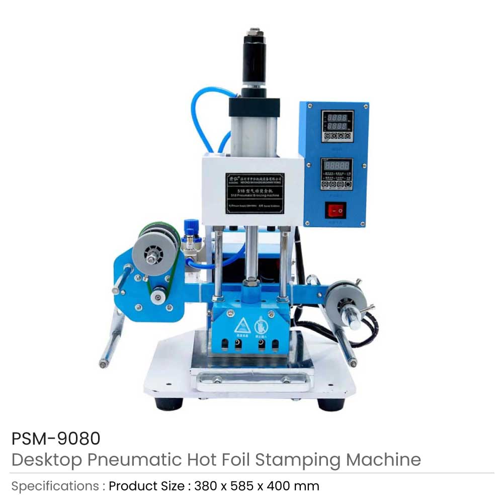 Our hot foil presser PSM-9080’s stable pressing force is directly influenced by the pneumatic cylinder. The printing ribbon is transmitted by a pneumatic system. Adjustments to the worktable are optional. It is suitable for many different types of stamping.