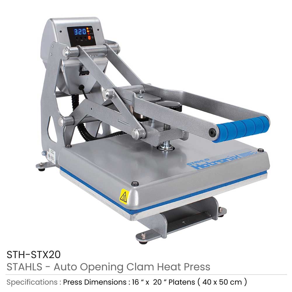 Multi-task while avoiding over-application and ruined garments with this auto-open clam heat press. Interchangeable platens allow you to heat print a variety of items of different shapes and sizes.