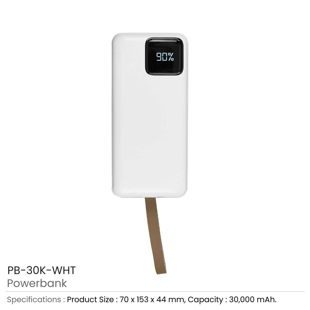 Fast Charging Digital Powerbank, 30,000 mAh with Flashlight, Leather Strap