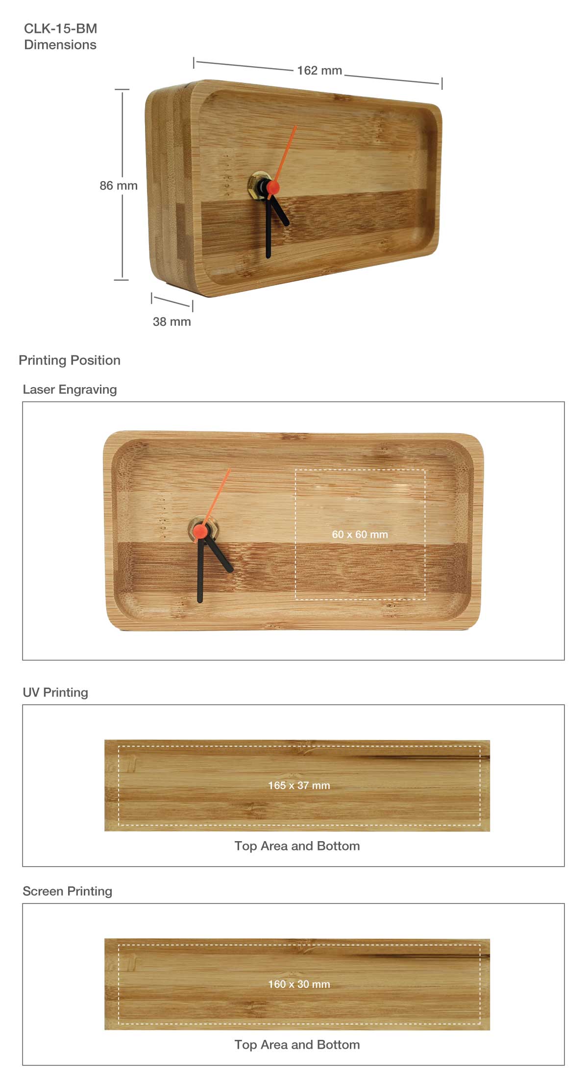 Rectangular Bamboo Desk Clock and Eco-Friendly Bamboo Analog Clocks with Branding and Printing Options. you can print your logo on it so it so a good choice for your promotional. Silent alarm clocks are made of 100% natural bamboo wood, which is non-toxic and hypo-allergenic and doesn’t need to be painted or contain any chemicals. Made by hand with excellent craftsmanship, silent, and without ticking to guarantee the greatest working and sleeping environments.