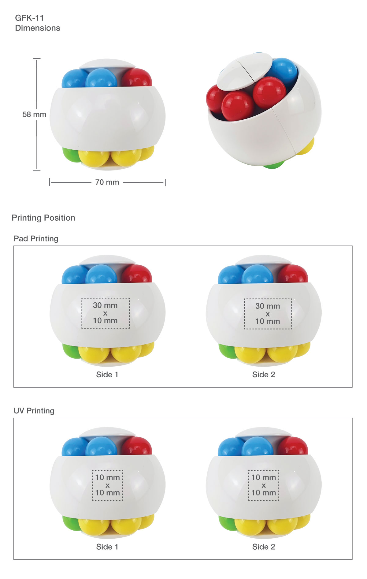This is a fun and appealing alternative that you can employ for marketing. You should consider this product if you wish to select something memorable. This product can aid you in your marketing efforts, particularly if your firm caters to children. High-quality ABS plastic spin ball puzzles with 12-piece colored balls that twist in two directions.
